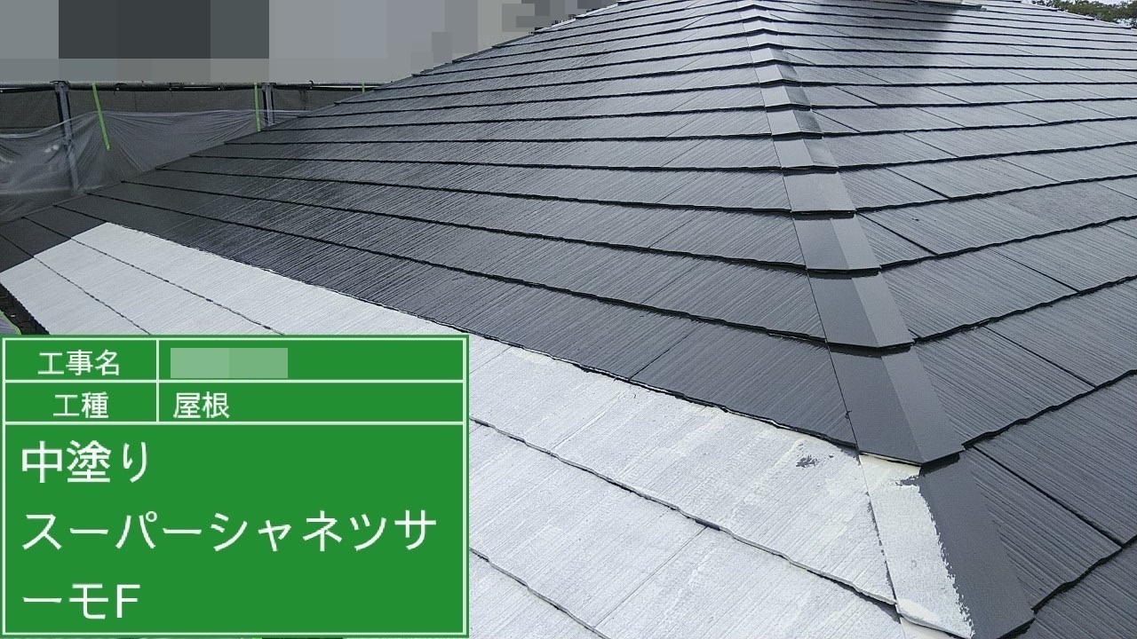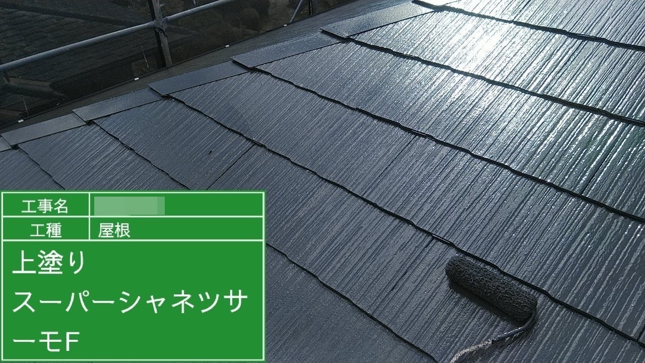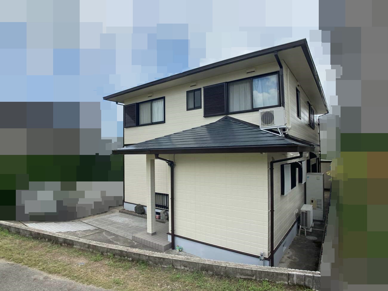 またドローンを飛ばして点検すると、屋根材の割れや亀裂も複数あることが分かりました。長く綺麗に保ちたいということを大切にお考えでした。そこでアステックの超低汚染リファインをご提案。こちらは汚れが付着しても雨などの水で流れやすく綺麗な状態を保ちやすいことや、耐候性も15~18年と長いこともオススメな点でした。施工例を何度も見に行かれ悩み抜いた末に外壁にニュートラルホワイト、屋根にカーボングレーを選ばれました。完成し「新築のように綺麗になった家!」とこだわりの色にお喜びいただきました。