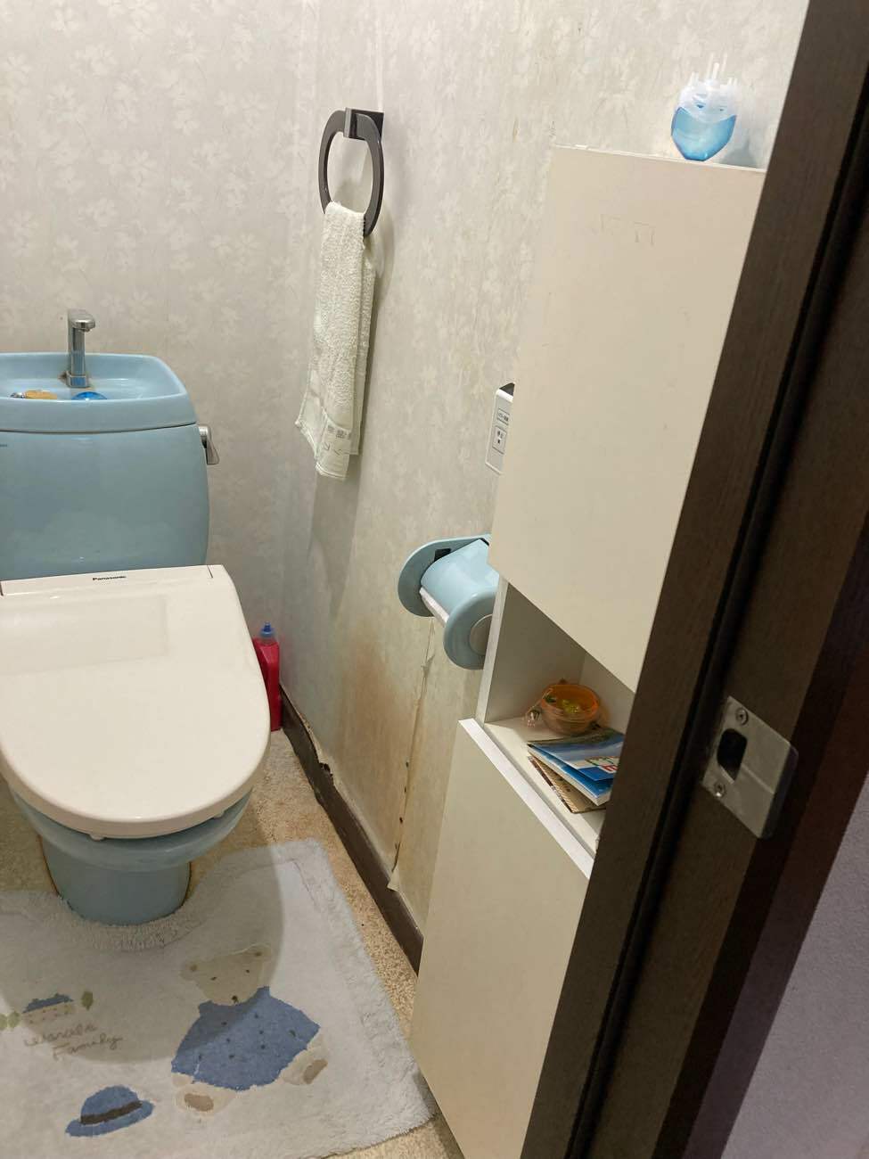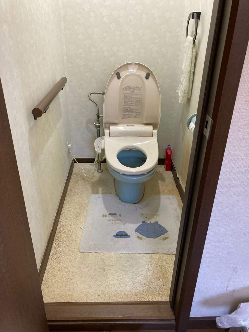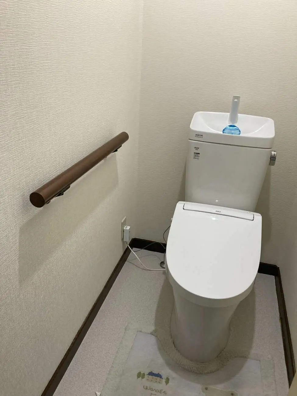 現在お使いのトイレと同様に、タンクの上で手洗いができるアメージュをご提案させていただきました。アメージュリトイレは、既設のトイレさまざまなタイプに対応可能であるため、大掛かりな工事が発生することなく効率良くリフォームをすることができます。床のクッションフロアや壁のクロスがはがれてきている部分もあったため、張替のご提案もさせていただきました。