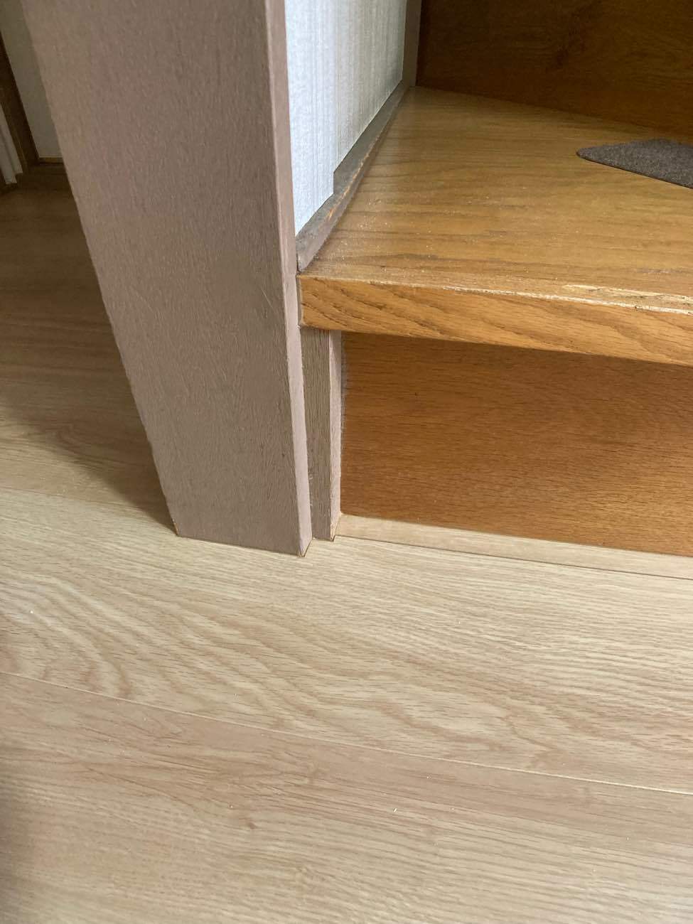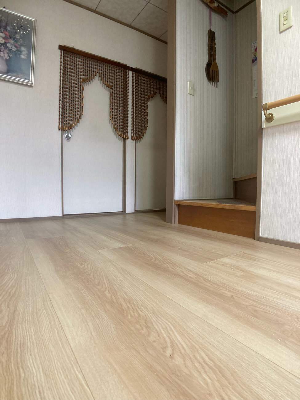 仕上がりをご覧になり、想像していたよりも明るい色の木で以前の雰囲気を損なうことなく空間が明るく清掃がしやすくなり、沈みもなくなったことや、洗面所やトイレとの段差も少なくなりお喜びになられました。
