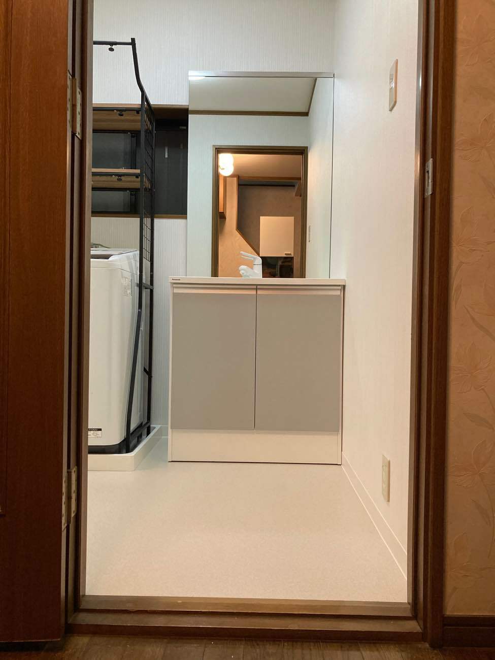 エコキュートの故障からの依頼でお伺いしました。お話を聴かせていただくと今まで塗装はされていましたが、水廻りは20年以上リフォームをされていない状態でした。とはいえ年数を感じないほど、すごくキレイに使用されていました。今まで使われていたからこそ使いにくさや掃除のしにくさを感じられているところがありました。色々聞かせていただいた上でこれからも長く使えて今の生活に合わせて使いやすく、掃除もしやすいものをご提案させていただきました。トイレ・洗面台はシンプルに物を置かず掃除がしやすいものを選び、浴室はキープクリーン浴槽と床、ホーローパネルで汚れの付きにくさと取れやすくお掃除がしやすく、また、RC構造で冷えもあったため保温性の高いものを選びました。キッチンは、収納したいものをお伺いした上で余裕を持たせた収納量と普段調理されるときの動線も奥様と一緒に考え引出しの位置を決めました。また、全ての場所の天井壁のクロス、床材に至るまで、ご夫婦で考え選ばれたこだわりの詰まったものに仕上がりました。