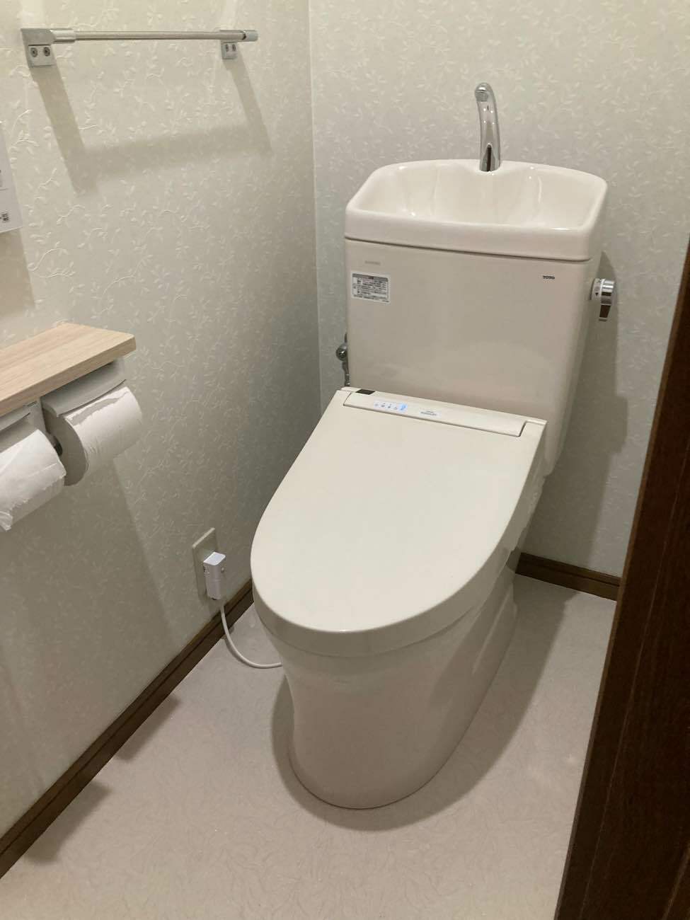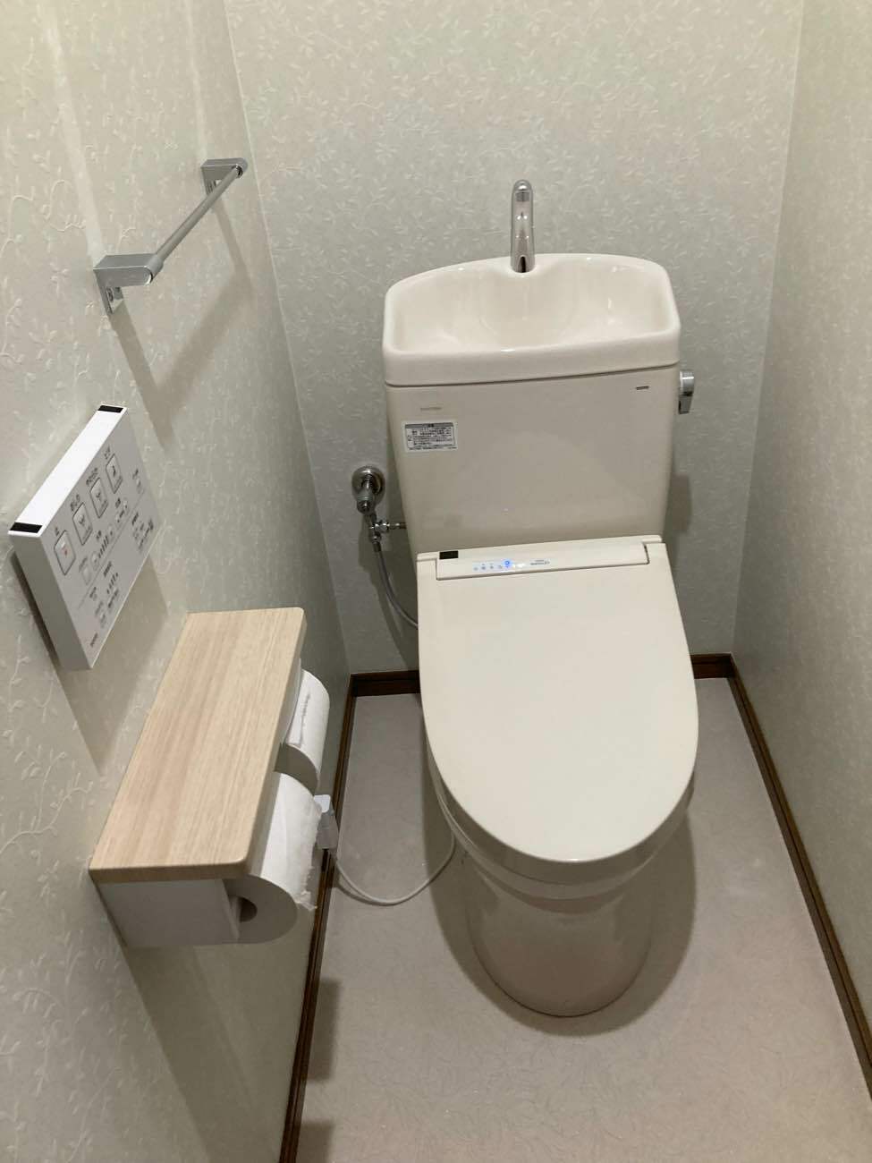 エコキュートの故障からの依頼でお伺いしました。お話を聴かせていただくと今まで塗装はされていましたが、水廻りは20年以上リフォームをされていない状態でした。とはいえ年数を感じないほど、すごくキレイに使用されていました。今まで使われていたからこそ使いにくさや掃除のしにくさを感じられているところがありました。色々聞かせていただいた上でこれからも長く使えて今の生活に合わせて使いやすく、掃除もしやすいものをご提案させていただきました。トイレ・洗面台はシンプルに物を置かず掃除がしやすいものを選び、浴室はキープクリーン浴槽と床、ホーローパネルで汚れの付きにくさと取れやすくお掃除がしやすく、また、RC構造で冷えもあったため保温性の高いものを選びました。キッチンは、収納したいものをお伺いした上で余裕を持たせた収納量と普段調理されるときの動線も奥様と一緒に考え引出しの位置を決めました。また、全ての場所の天井壁のクロス、床材に至るまで、ご夫婦で考え選ばれたこだわりの詰まったものに仕上がりました。
