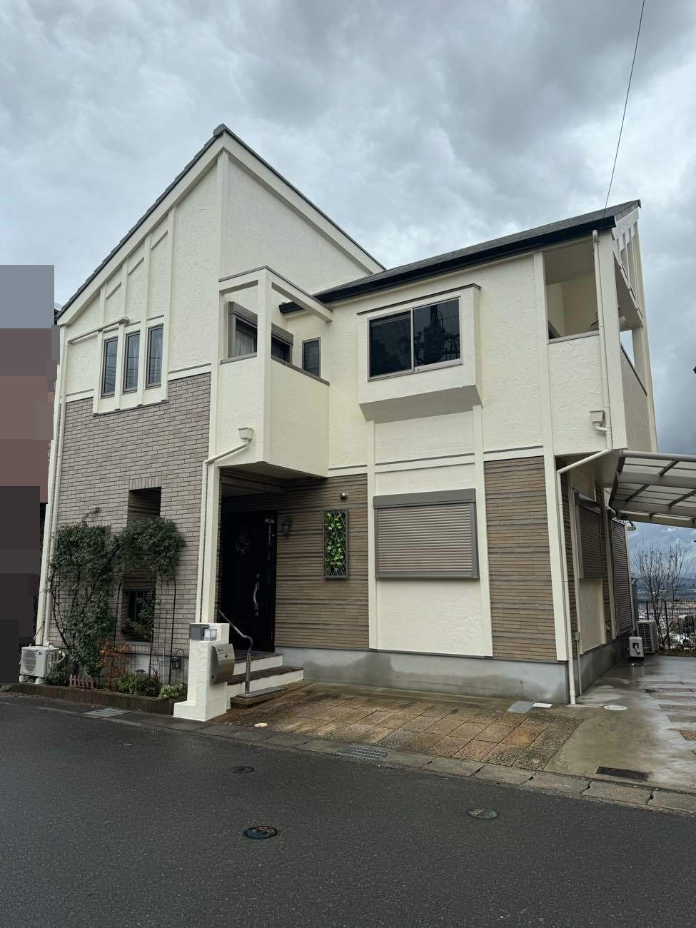 そこで外壁塗装をする前に、徹底的に劣化箇所を確認し補修、コーキングの打ち直しをし、洗浄による水の侵入が無いことを確認してから外壁の塗装をすることをご提案。外壁の色は白系の色をお望みとのことでしたのでアステックのリファインを提案。超低汚染タイプの塗料のため、雨水等で汚れが流れ落ちキレイな状態を保ちやすいことが特徴です。工事が完了し、これで20年安心して住めるとお喜びいただけました。