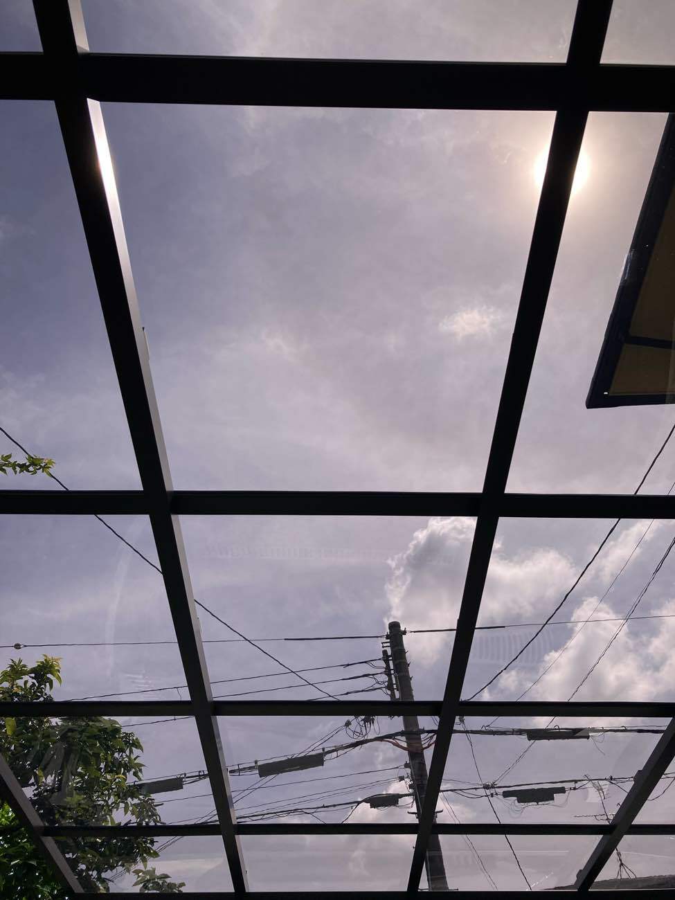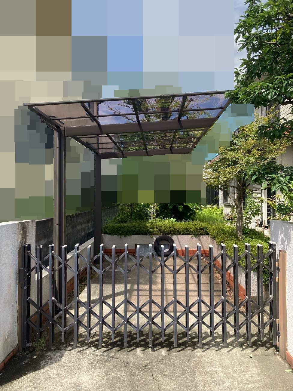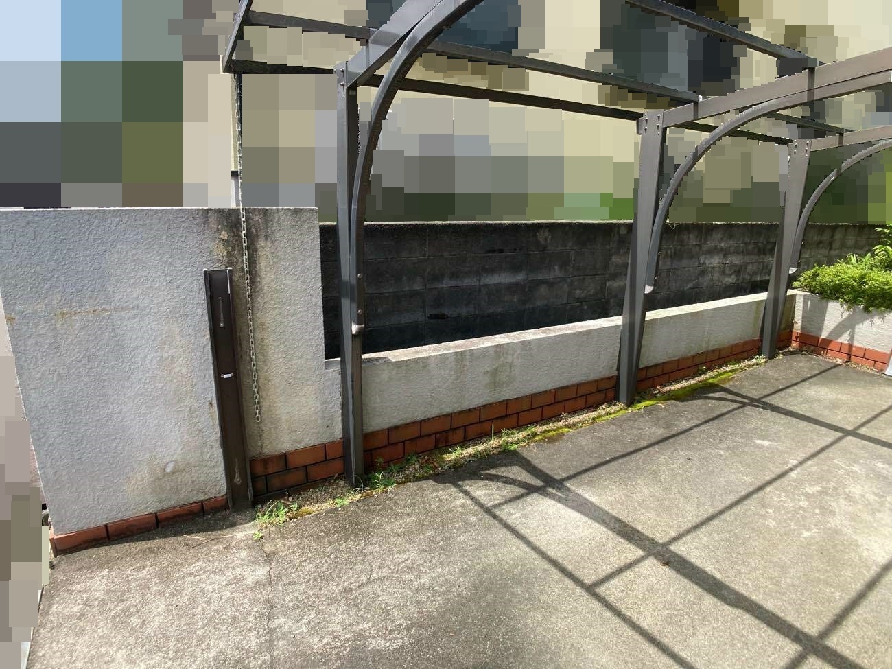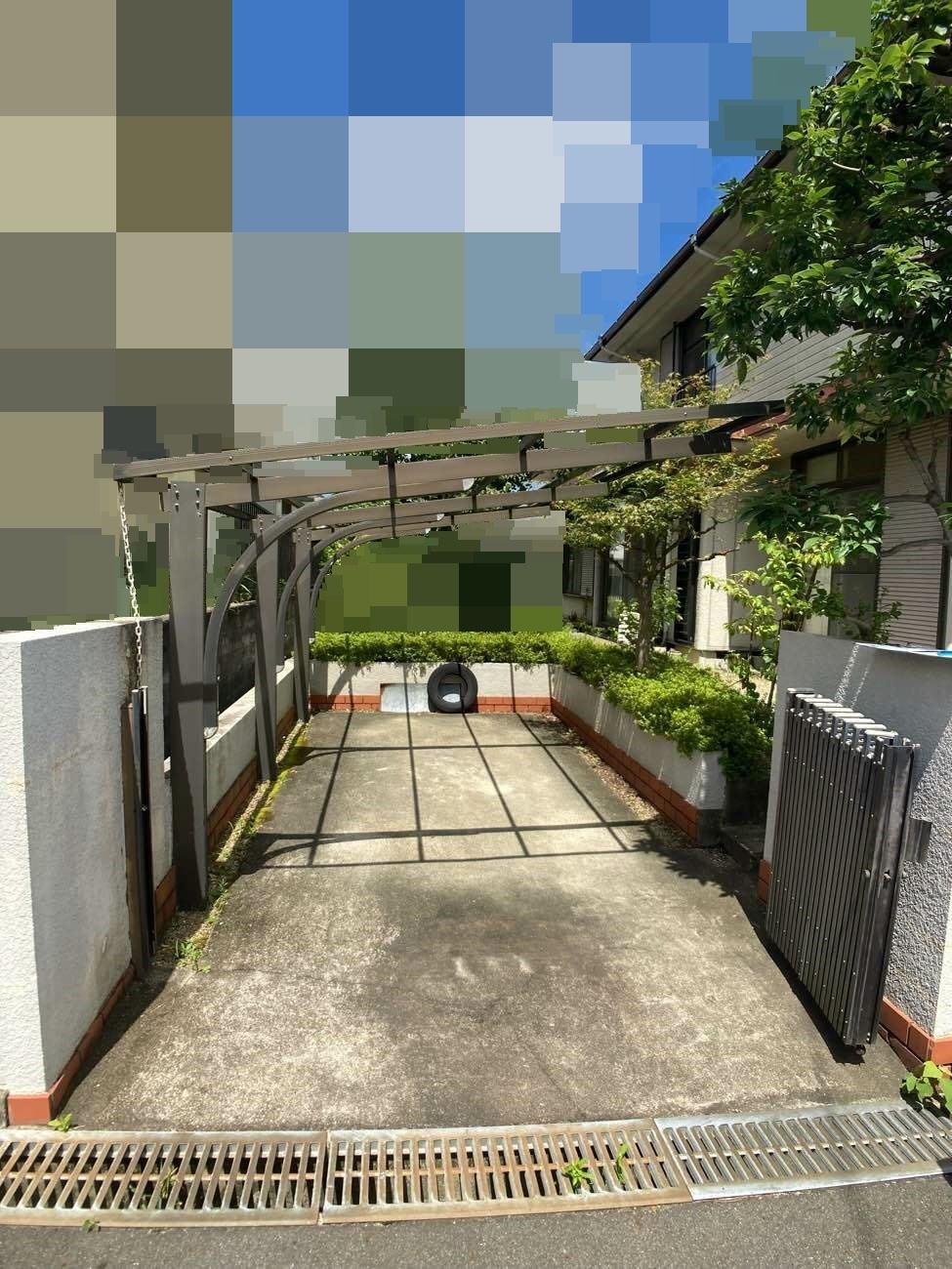 ・既設のカーポートは数年前に屋根が飛び骨組みだけになっている