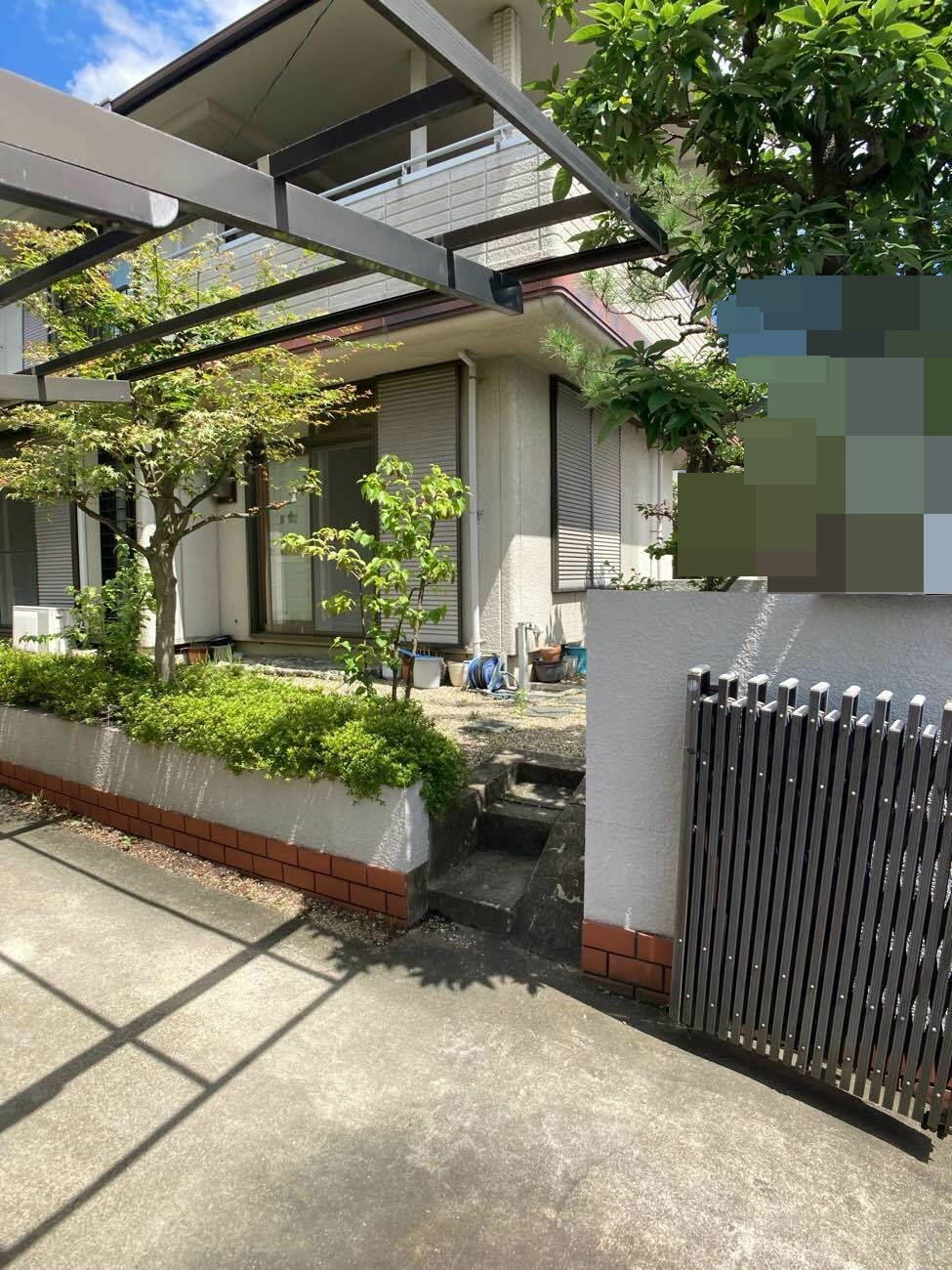LIXILのネスカFを提案!高さが標準で2.2mと高く、さまざまなサイズに対応できシンプルながら耐風圧38m/秒と安心の強度が特徴。今回は余裕を持って2.5mで提案させていただきました。出来上がりをご覧になって、「思っていた以上にシンプルですっきりした。