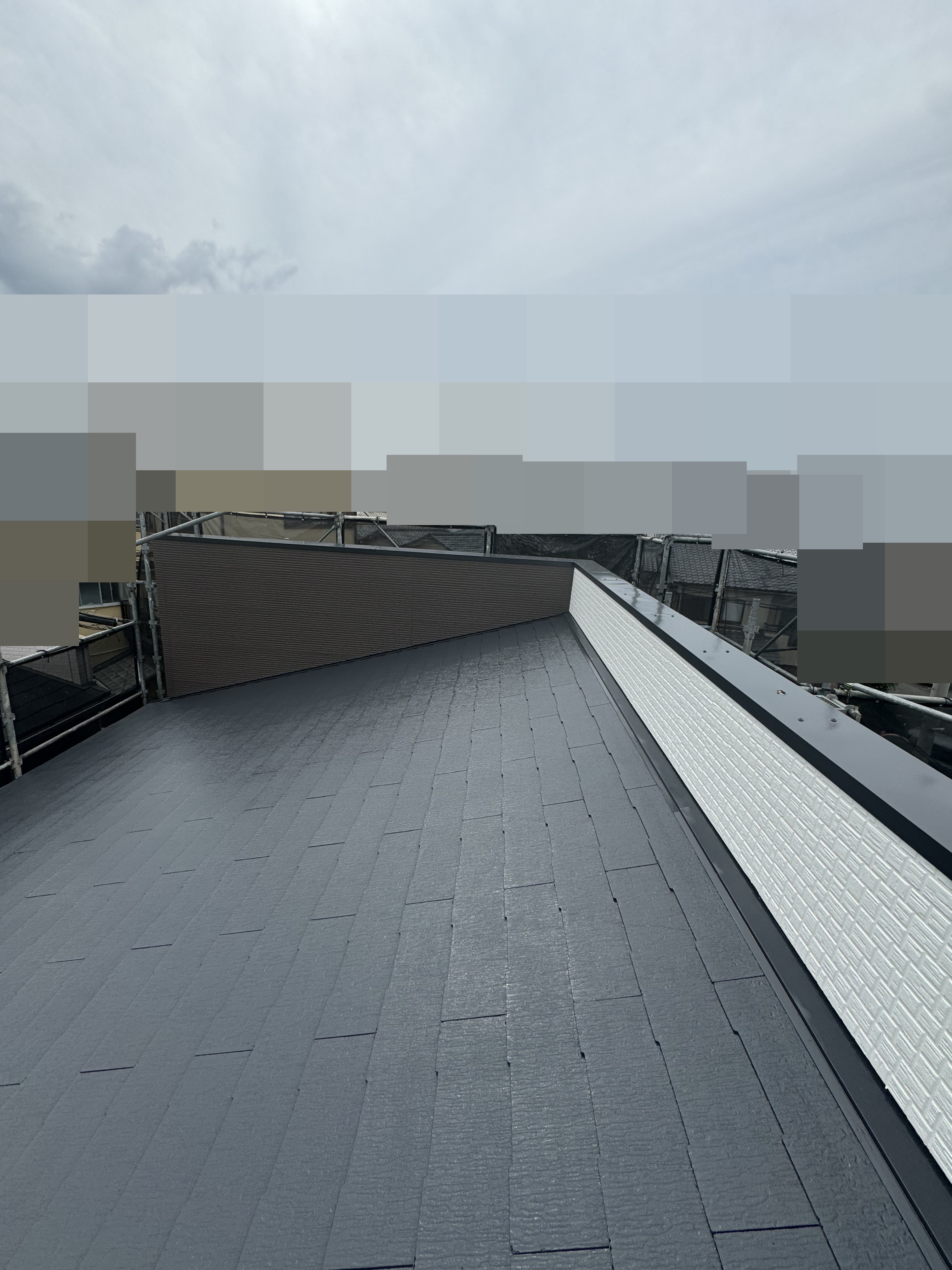 そこで、コーキングには15年以上長持ちするイクシードを、屋根には約18年の対候性があるフッ素塗料をご提案しました。さらに、外壁の色を二色に分け、コントラストをつけることで、見た目も美しい仕上がりです。耐久性と美しさの両立をすることにより、長期間にわたり美しい外観を維持できるため、大変満足していただきました。