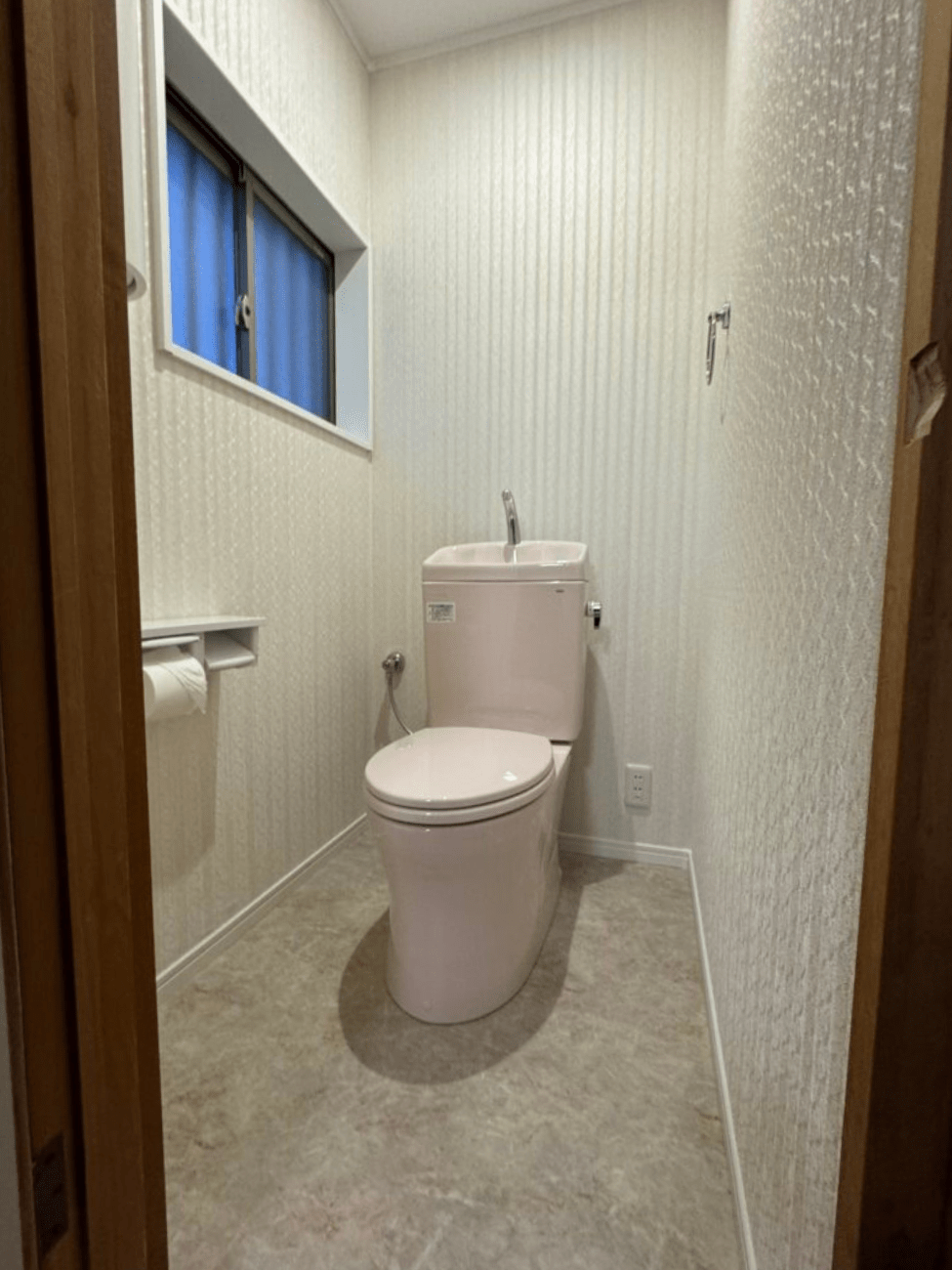 リフォーム後はトイレが暖かく快適になり、デザインもお嬢様の大好きなの白とピンクでかわいらしく仕上がり、大変満足していただくことができました。