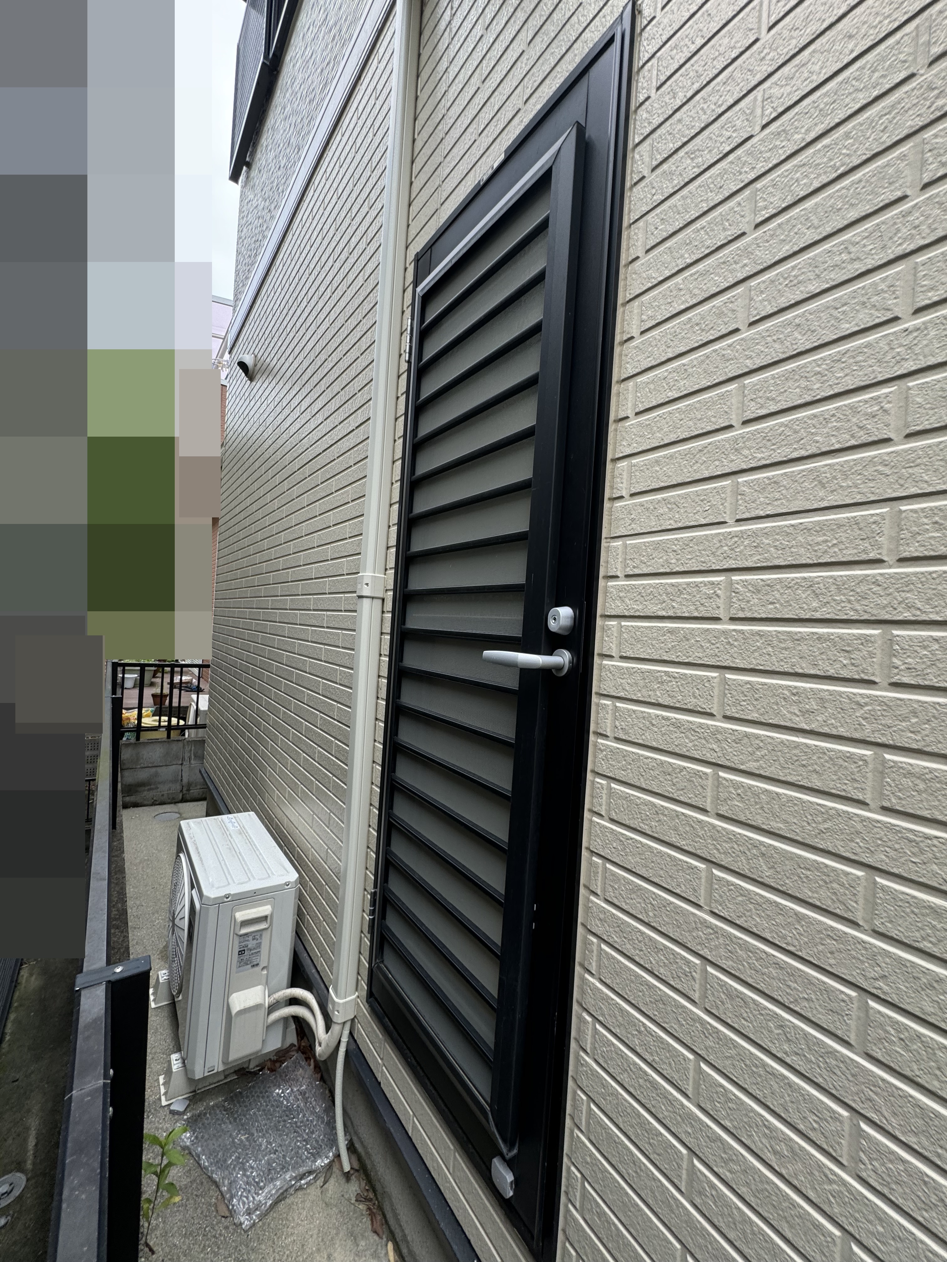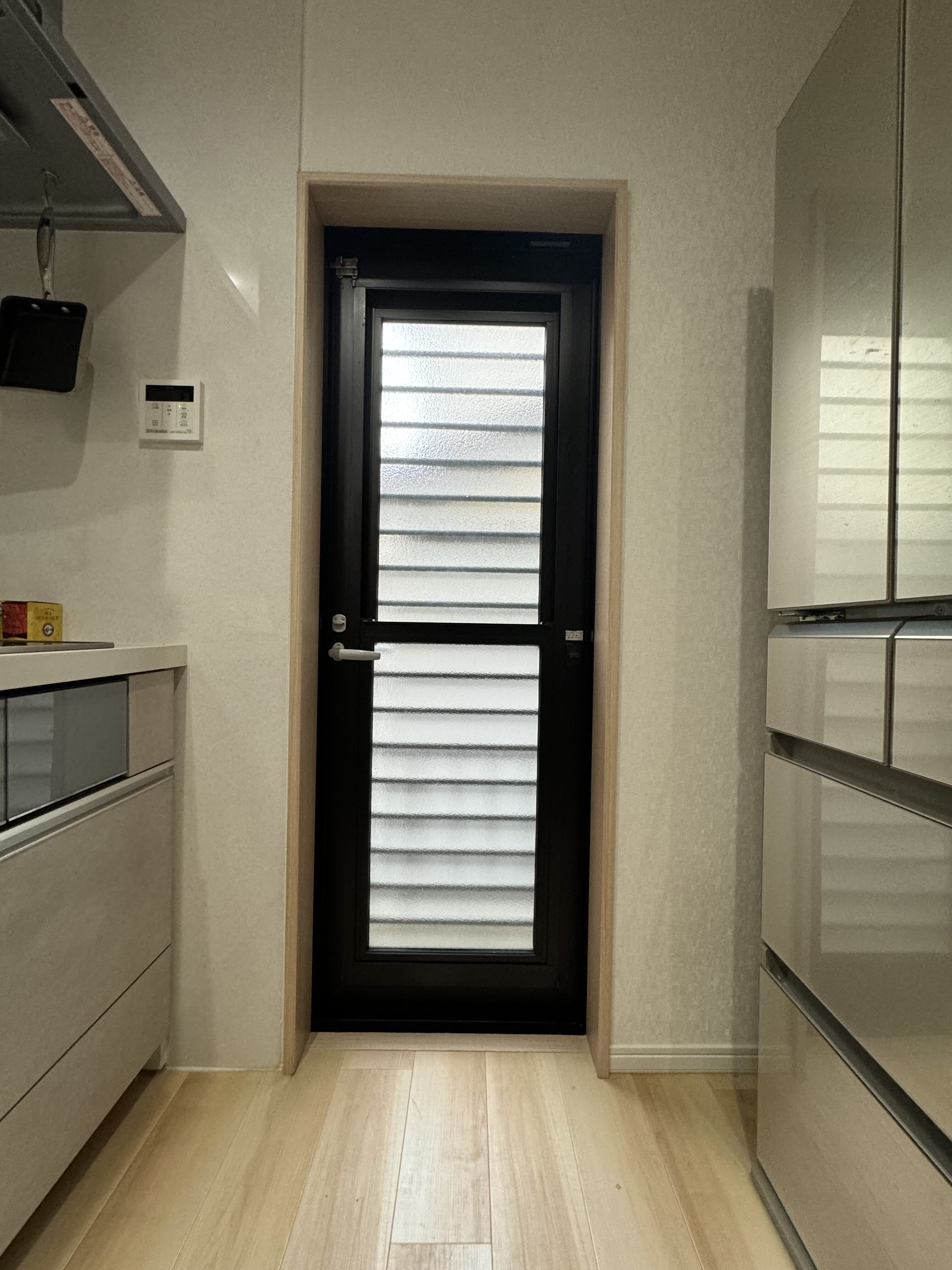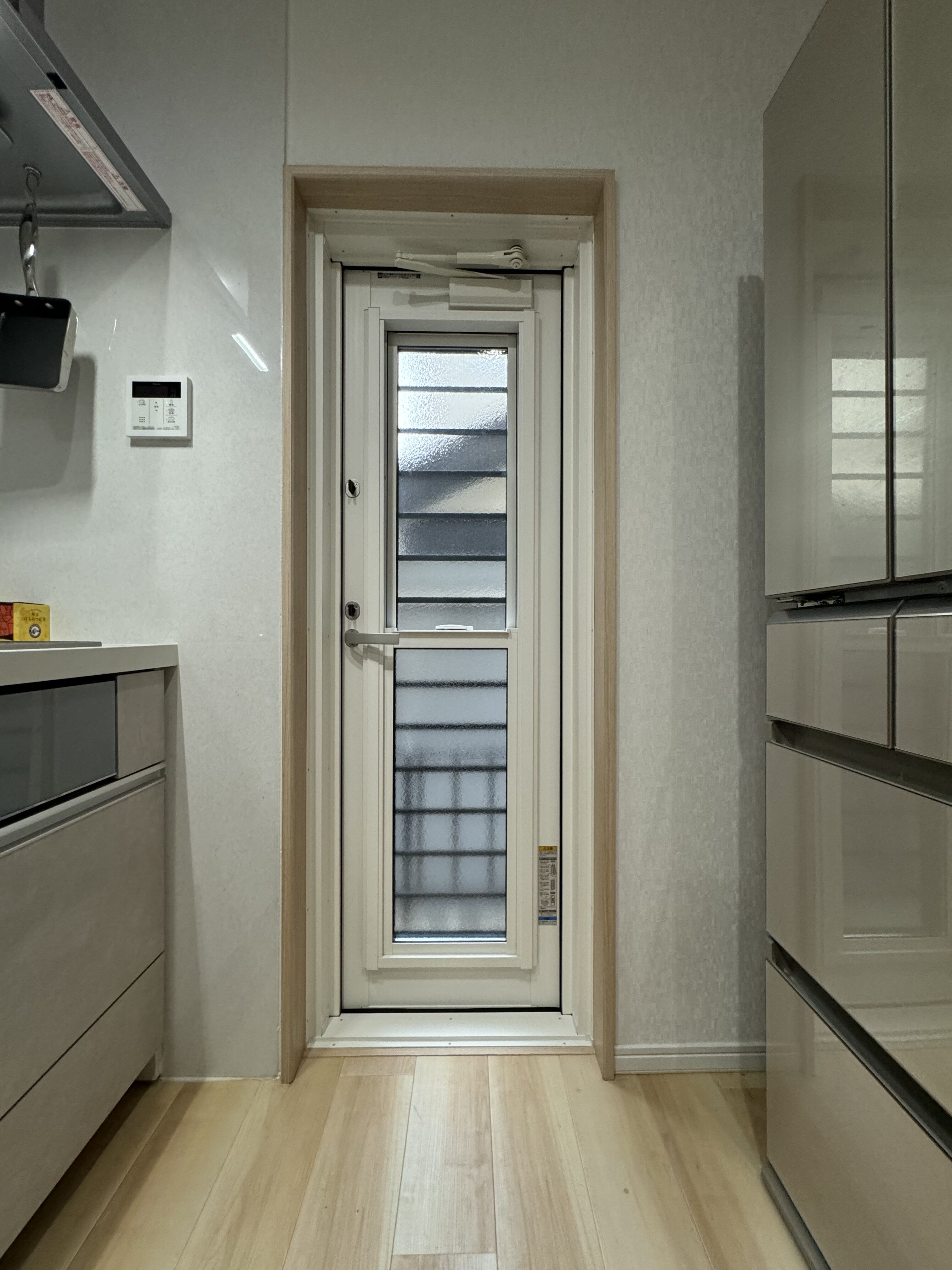 玄関については、3歳のお子様を抱っこしながら玄関のカギをカバンから取り出す手間にストレスを感じていました。勝手口については、南向きで夏は暑く冬は寒いというお悩みがありました。玄関ドアにはポケットキーを、勝手口には断熱ドアを提案しました。
