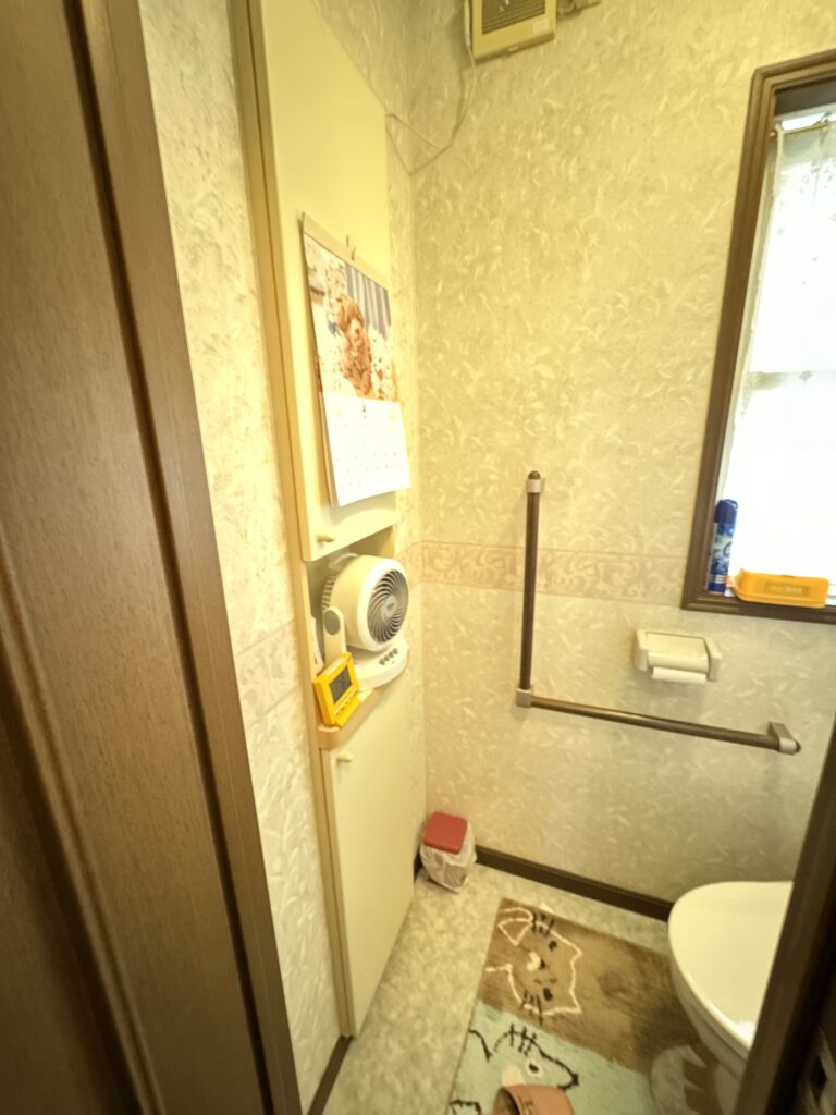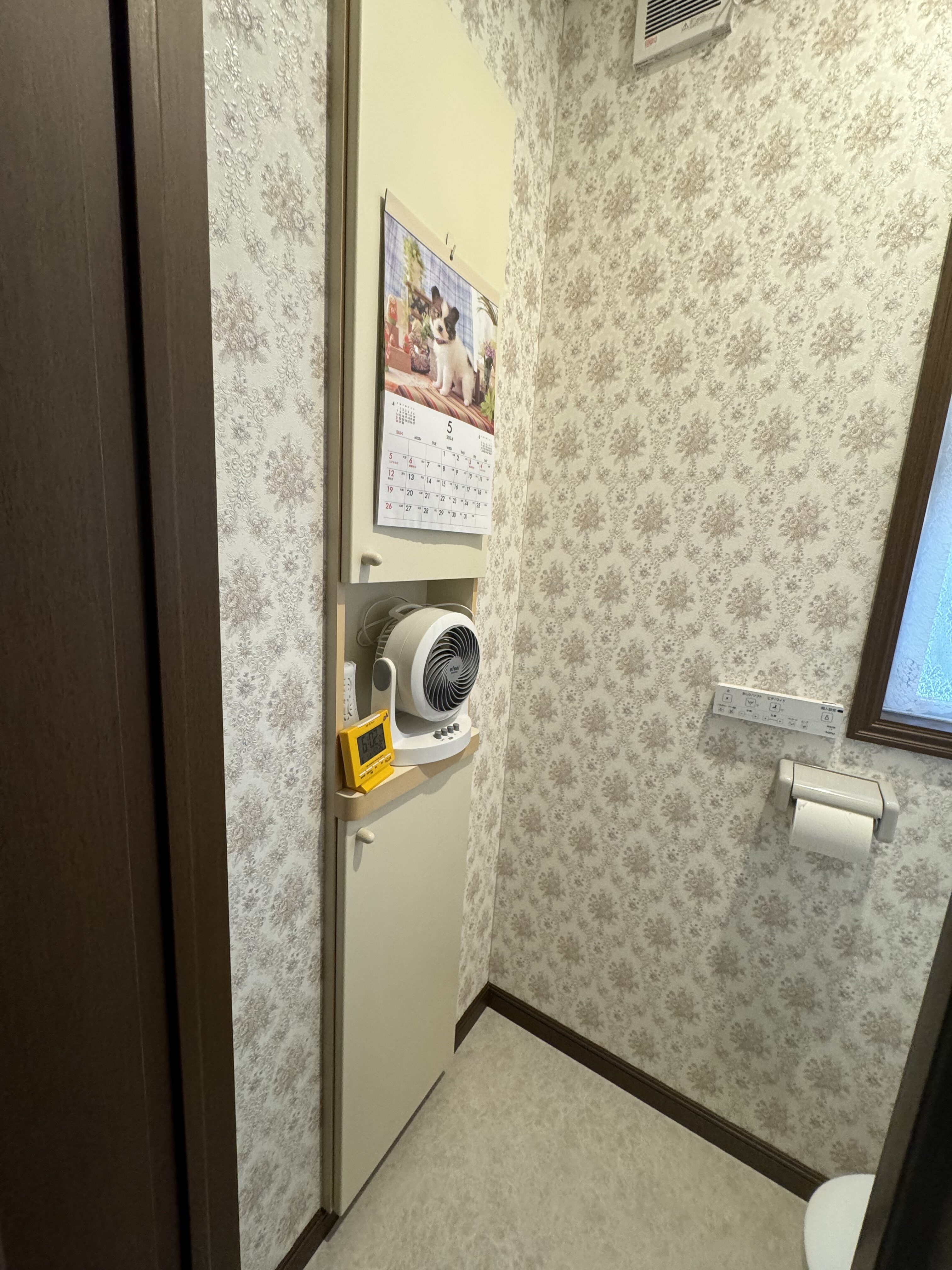 ピュアレストQRを提案。ウォシュレットのリモコンは壁付けにして操作しやすいです。掃除が楽になり、ウォシュレットのリモコンも使いやすく大変便利なこと、壁クロスがとても印象的なトイレ空間になり喜んでいただきました。