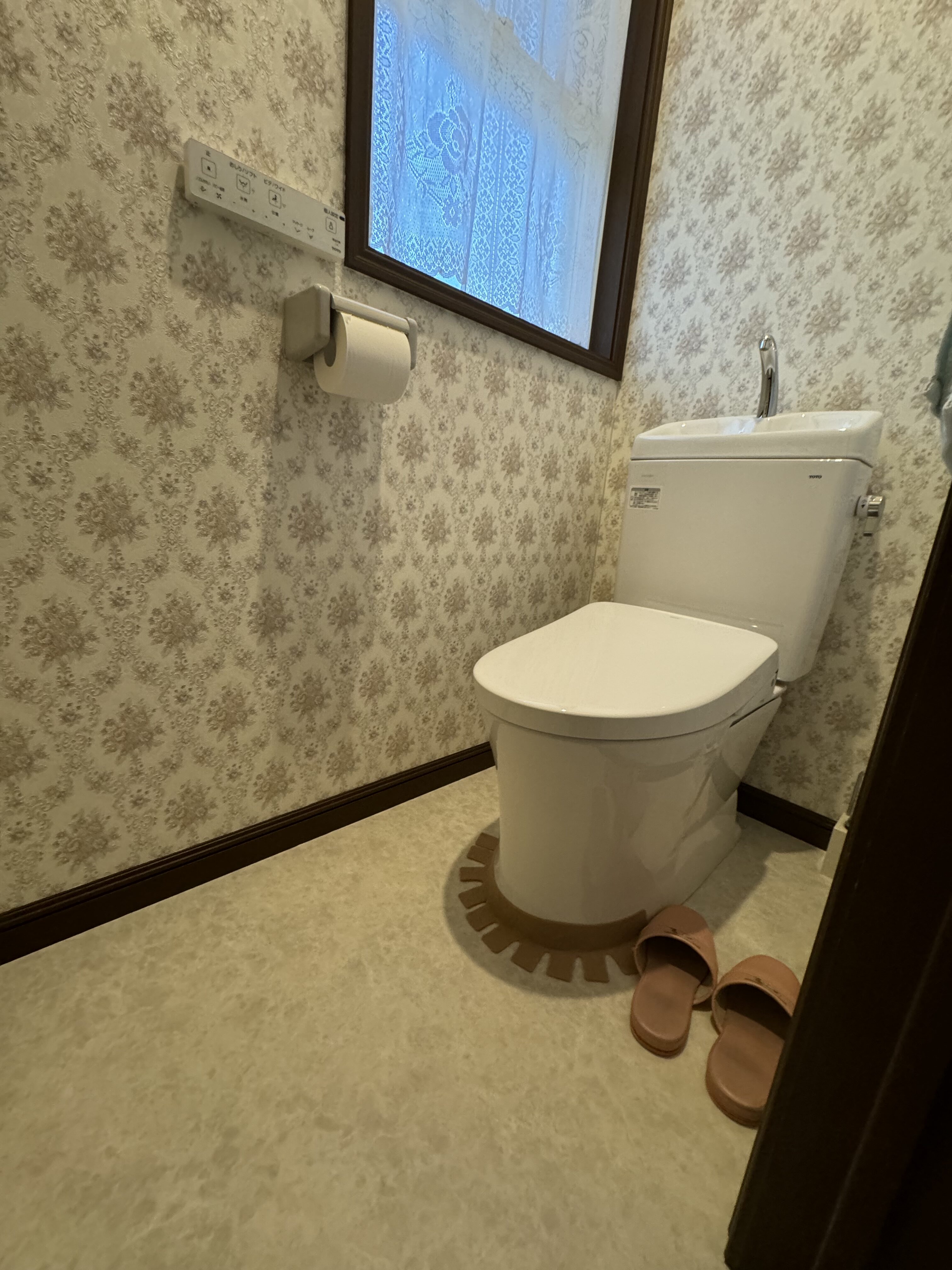 築22年が経過し、トイレを一新したいということでご相談いただきました。掃除が簡単で、壁のクロスをゴージャスにしたいとのご要望でした。