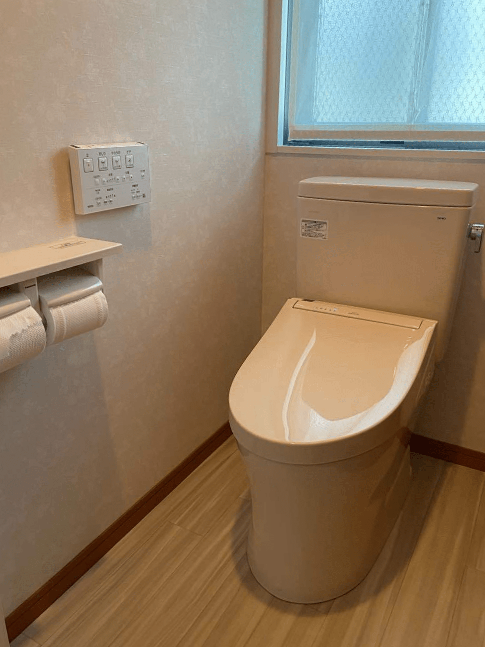 当初は便座のみの取替となっていましたが、どうせならとこの機会にトイレ本体ごとを交換することになり、2階のトイレに関しては、今と使い勝手は同じようなものをご希望であったので、使い慣れたものをご提案。1階も2階も同時にトイレが新しくなり、「1階のトイレも2階のトイレもとなって少しバタバタしたけど、いっぺんに済んでスッキリしました。」と仰っていただけました。